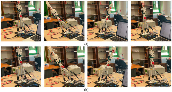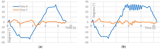 Acquired results during the test shown in Figure 6 in terms of angles: (a) without load; (b) with load.