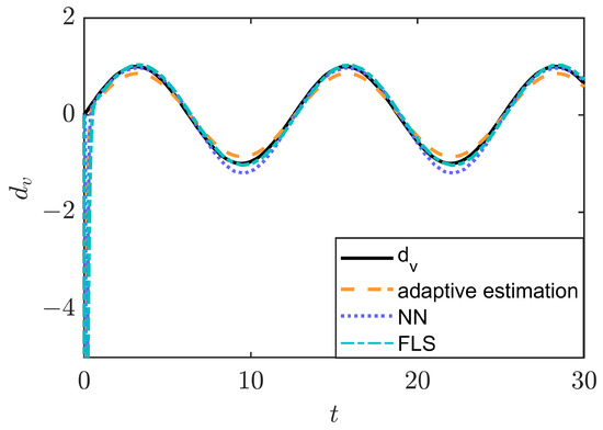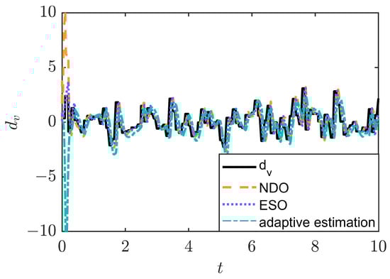 Based on the Lemma 1 in [77], it can be proved that will converge to its true value , will converge to its true value v, and the disturbance estimate will converge to its true value .