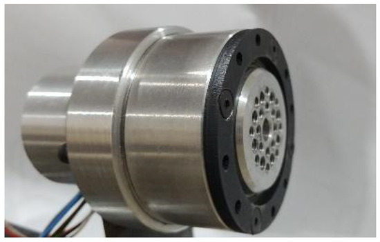 Figure 4 depicts the fully assembled developed actuator. The dimensions of the developed actuator were 70 mm × 75 mm, and it had a cylindrical structure with an overall weight of 788 g. The harmonic drive we developed was a CSF 20 series with a reduction ratio of 160.