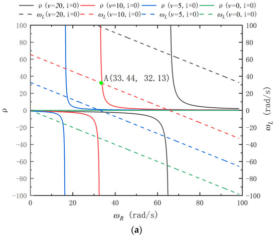 Because the drilling and anchoring robot’s travel speed ranged from 0 to 30 m/min, four different values of vL (0, 10, 20, and 30 m/min) were chosen. Simultaneously, the vR range was set to [–30, 30] m/min. A simulation analysis was conducted to examine the changes in the steering curvature and travel speed of the drilling and anchoring robots under these four scenarios, as illustrated in the following Figure 4.