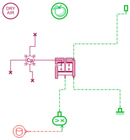 The air suspension system is an extremely complex nonlinear system, and it is difficult to analyze it by means of mathematical model modeling. AMESim has an extensive model library that covers almost all common systems in the mechanical field, including mechanical, pneumatic, hydraulic and other components []. A combination of variable volume pneumatic chamber elements and a pneumatic piston with a fixed body is adopted to model the air spring. The main components of the air spring are shown in Figure 16.