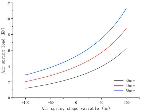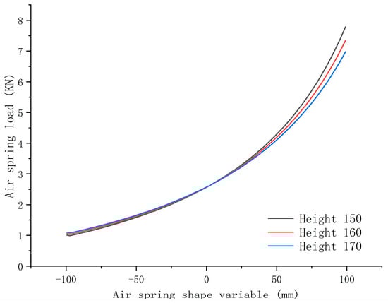 According to the requirements of the project, the diaphragm air spring is tested according to the relevant standards in the industry. Based on existing research [,,], its vertical stiffness is: