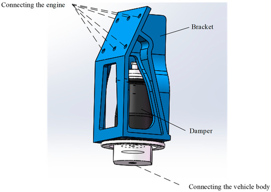 7] carried out nonlinear modeling of a universal hydraulic mount, identified the parameters of the model, and obtained specific model expressions. However, its disadvantage is that due to the structural problems of the hydraulic mount itself, dynamic hardening occurs at high frequencies, making its vibration and noise reduction capabilities unable to meet the requirements. The structure of the shock absorber is complex, and it is difficult to achieve a light weight, which cannot meet the limited installation space of the engine mounting system [