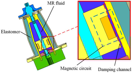 4]. In addition to the function of vibration isolation, the engine mount system also plays a role in bearing and limiting. Therefore, this paper uses these two materials to design a magnetorheological fluid–elastomeric damper with high static stiffness and adjustable stiffness and damping.