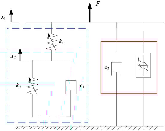 Figure 13, the model of the elastomer represented in the blue box contains two nonlinear springs and one damping. The expression for this part of the force is as follows: