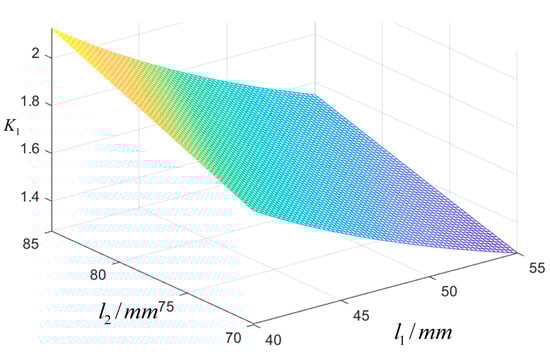 According to Equation (11), it can be seen that the amplification of the lever mechanism is mainly affected by the tensile stiffness of the hinge, the rotational stiffness , and the lever length. Therefore, reasonable optimization of the structural parameters of the lever mechanism can make the lever mechanism have a better amplification effect.