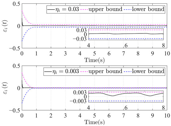 Based on the proposed performance function, the boundary constraint of the position tracking error variable is as follows: