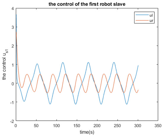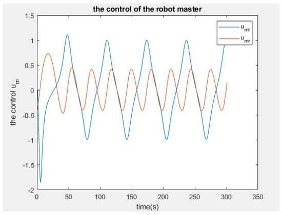 Furthermore, the simulations of the controllers for both the master and the slaves are illustrated in Figure 25, Figure 26 and Figure 27, respectively. It is observed that the robot master adheres to the desired trajectory until time t = 15 s, at which point it deviates slightly. However, after a few seconds, it resumes following the trajectory initially set.
