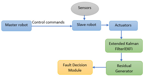 Figure 12 describes the fault detection procedure in the master–salve robot configuration.