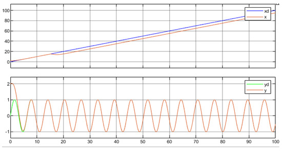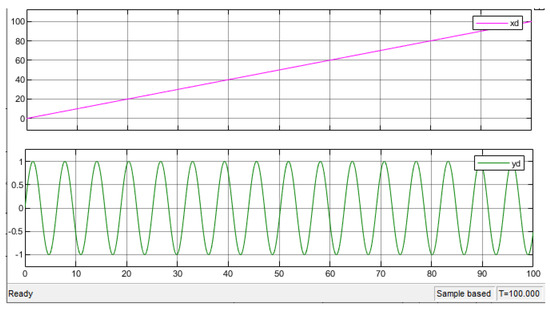 The robot was controlled in order to follow a desired trajectory given by , as shown in Figure 14.