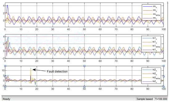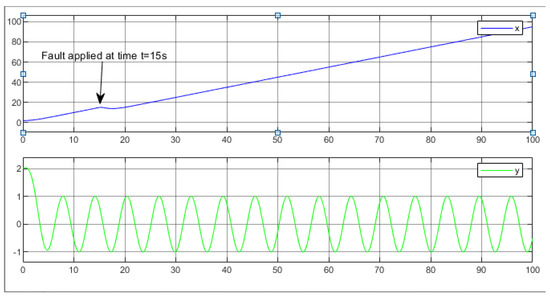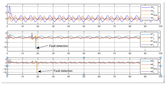 Subsequently, we induced an offset fault in the master robot’s x measurement at 15 s, as illustrated in Figure 19.