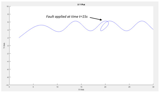 Trajectory of the mobile robot when fault applied at t = 15 s.