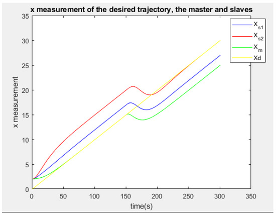 The x coordinate of the desired trajectory of the master and the slaves.