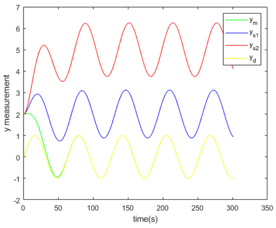 The coordinate y of the desired trajectory of the master and slaves.