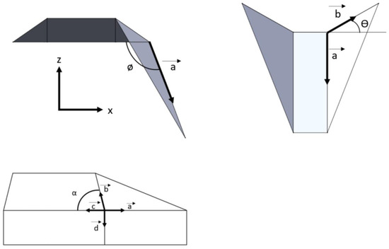 The kinematics of the origami is computed as follows. This is based on the research shown in [45,46]. The output and input angle of oriceps can be related using the following equations. The sides of a single spherical four-bar mechanism are taken as shown in Figure 5.