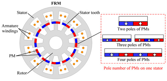 Topology of FRM with different poles of PMs on one stator tooth.