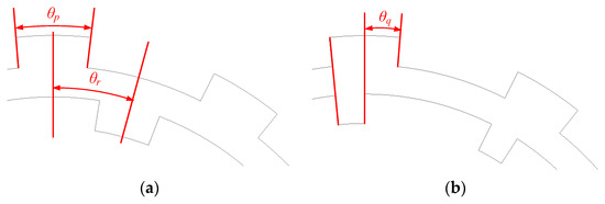 Definition of design parameters for the rotor. (a) θp and θr. (b) θq.