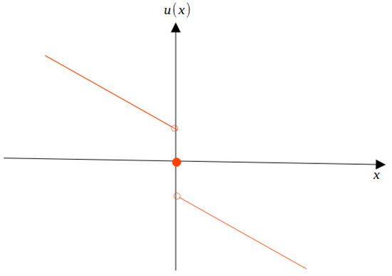We obtain that . This concludes that the closed-loop linearized systems (7) and (8) are globally finite-time stable. Here, for , for , and for . Figure 2 shows a picture of the obtained control algorithm.