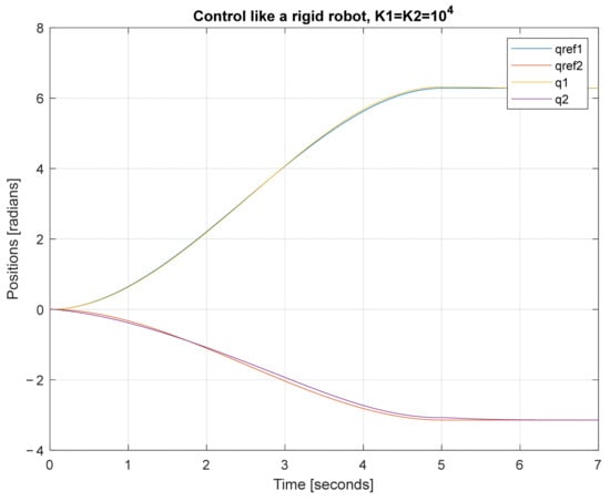 Before comparing the different controllers, simulations were conducted, controlling the robot as if it was rigid, i.e., directly compensating for the inertia, gravity, centrifugal, and Coriolis terms. For cases