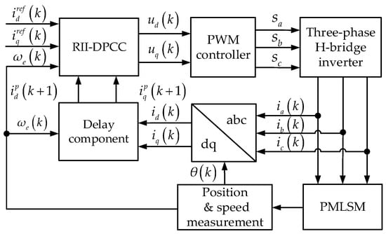 To validate the RII-DPCC algorithm proposed in this paper, numerical simulations are carried out as follows: the propulsion system adopts an air-core PMLSM structure, the system block diagram is shown in Figure 8 and the nominal parameters are shown in Table 1. The inverter adopts an H-bridge cascade topology with a chopping frequency of 1 kHz and a control frequency of 4 kHz to verify the performance of the current control algorithm under constant load.