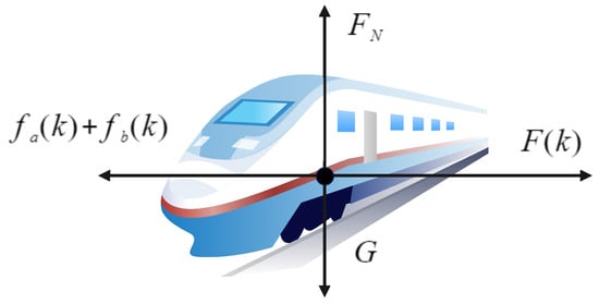 This section considers a single-point-mass high-speed train operation model. This high-speed train single-mass dynamic model is used to view the N trains as a whole, which are analyzed in terms of forces, ignoring the forces between the trains, as shown in Figure 1.