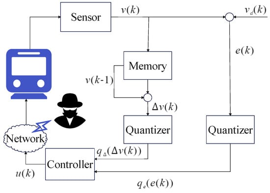 Due to network bandwidth or capacity limitations, sensor signals must be quantized before transmission [27,28,29]. Quantization effects in nonlinear systems have been extensively studied in the last decade. Ref. [30] presents a synchronized quantization control method for segmented affine systems, aiming to ensure the stability of the system under synchronized clocks by handling the quantization error through a unified framework. This method takes into account quantization effects, time delays, and perturbations, and provides a control strategy to improve the robustness and performance of the system. Ref. [31] presents a quantized stabilization control method, specifically for affine systems with state-dependent switching, that takes into account the quantization of control inputs and state measurements. The authors design a control strategy based on Lyapunov’s method that is able to ensure the asymptotic stability of the system with a finite number of quantization levels. Their method effectively solves the stability problem when there is simultaneous quantization of the control inputs and state measurements. Data quantization introduces quantization errors that affect the accuracy of the control system [32,33,34]. In high-speed train speed-tracking control, finding the optimal way to effectively deal with quantization errors in order to ensure the performance of the control system is an urgent matter. In Ref. [35], a model-free adaptive consensus tracking method based on an active quantizer is proposed to specifically cope with multiple high-speed trains under the influence of sensor bias. This process utilizes the active quantizer technique to achieve inter-train consensus tracking through an adaptive control strategy, which effectively reduces the impact of sensor bias on the system performance and improves the stability and accuracy of the control system. The quantization mechanism’s theoretical relevance and practical usefulness are important, but its implications for high-speed train speed-tracking control need to be further studied. There are several outstanding questions in the literature on quantization effects that contribute to our research.