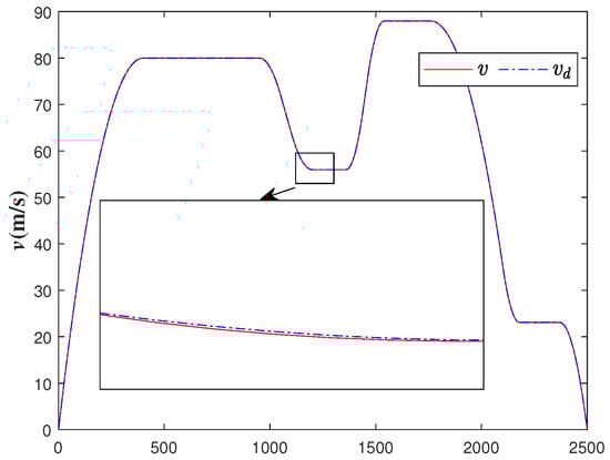 Figure 3 shows the velocity tracking of the algorithm, where the red solid line is the desired velocity profile and the blue solid line is the actual velocity profile, from which it can be seen that even in the presence of data quantization and DoS attacks, the v is still able to track the desired trajectory well under the MFAPC algorithm. Figure 4 shows the traction/braking force.