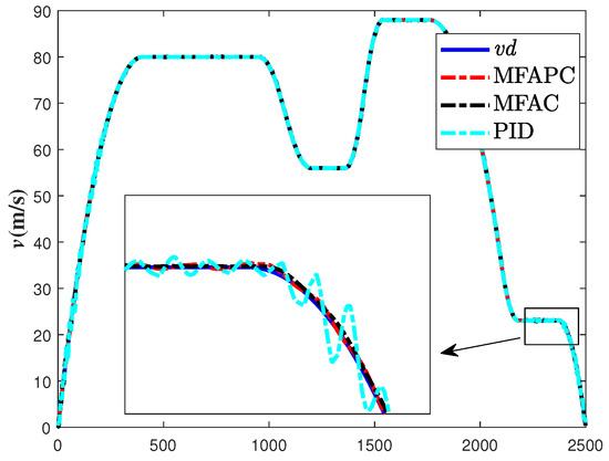 Finally, we compare the proposed method with the MFAC algorithm and the PID approach. Figure 9 and Figure 10 show that different data-driven control methods can quickly and reliably stabilize the MHSTs around the desired trajectories. However, by analyzing the mean tracking error curves for the velocity tracking, it is found that the fluctuation range observed with MFAPC is significantly smaller than those observed with MFAC and PID, which further proves the superiority of the MFAPC method.