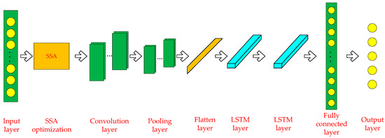 - An SSA-CNN-LSTM prediction model achieves a prediction accuracy of up to 98%, which is higher than the LSTM neural network and CNN-LSTM models. Meanwhile, the SSA demonstrated its superior optimization and convergence capabilities to determine the optimal parameters faster and accurately.