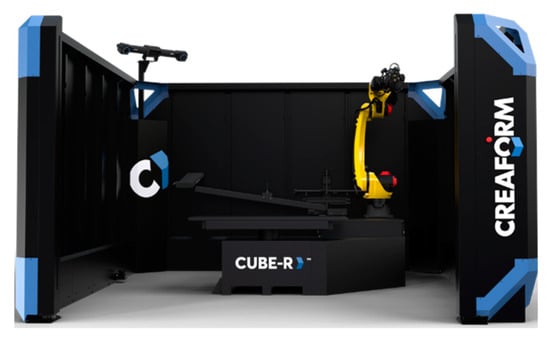 Since the 1980s, with the advancement of industrial robot technology, the application scenarios of industrial robots have been greatly expanded, and the installation of 3D laser scanners at the end of programmable industrial robots and the use of programmed control industrial robots to carry 3D laser scanners to complete automatic inspection of parts has become a mainstream trend in the field of industrial inspection [7,8]. Robotic 3D scanning and measuring system is shown in Figure 3.