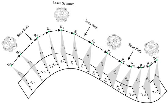 As shown in Figure 7, the laser scanner’s scan path planning consists of three main components: surface measurement points, scan viewpoints, and scan attitudes, where each scan viewpoint corresponds to a scan attitude, and the scan path is essentially the integrated result of a series of scan viewpoints and scan attitudes.