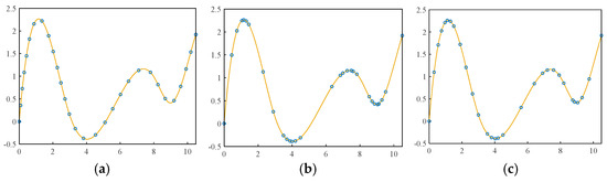 The distribution of measuring points with different sampling methods. (a) Equal arc-length method; (b) equal chord-height method; (c) adaptive sampling method proposed in this paper.