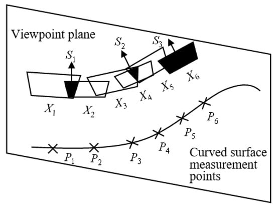 The free-form sampling method for laser line scanning is based on the construction of a viewpoint plane and the Boolean intersection of the viewpoint plane with the discrete isoparametric lines of the surface to obtain the surface measurement points. As shown in Figure 10, by constructing the viewpoint plane to measure the free-form surface, the movement of the viewpoint plane can be regarded as the movement of the line laser scanner, and the surface measurement points obtained from each intersection are on the viewpoint plane, which not only conforms to the working principle of the line laser scanner, but also ensures the integrity of the surface measurement.