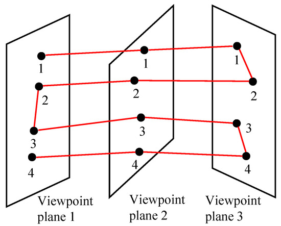 As shown in Figure 15, firstly, multiple scan viewpoints on each viewpoint plane are numbered in the order from inside to outside. Then, the first scan path is created by connecting the first scan viewpoint on each viewpoint plane and the second scan viewpoint on each viewpoint plane, and the second scan path is created by connecting the N scan viewpoints on each viewpoint plane, until the Nth scan path is created by connecting the N scan viewpoints on each viewpoint plane in turn. Finally, the end scan viewpoint of the adjacent scan path is connected with the start scan viewpoint until the N scan paths are traversed, and a complete bi-directional scan path can be generated automatically.
