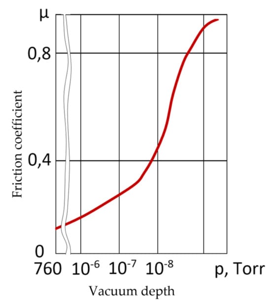 Figure 1 shows the dependence of the friction coefficient on the ambient pressure for diamond-on-diamond sliding friction. Critical conditions are established in the pressure region of 10−5–10−6 Pa.