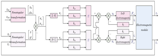 According to the state-space equation, the model described above can be identified as a coupled system. The dynamic characteristics of the left suspension point are influenced by the gap and current of the right suspension point’s state variables, while the dynamic characteristics of the right suspension point are influenced by the gap and current of the left suspension point’s state variables. There is a mutual influence between the dynamic characteristics of the left and right suspension points. Furthermore, it should be noted that the system is inherently unstable and necessitates designing a controller.