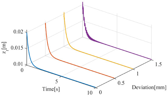 Figure 11. From the graph, it is evident that as the deviation increases, the dynamic characteristics of the system gradually deteriorate. Therefore, enhancing the installation accuracy of the electromagnet holds great significance in improving the dynamic performance of the system.