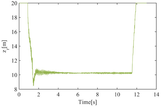 During the train’s operation, the electromagnetic module is prone to external interference or unbalanced forces. To simulate this scenario, a constant force of 500 N is applied to the suspension point on the right side in the simulation. The dynamic response curve of the system is observed thereafter in