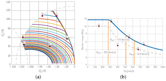 To represent the operation regions of an IPMSM, a widely used approach is to present the working points of the machine on the plane (see Figure 2).