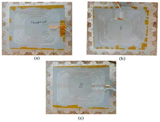 Structure of the coil prototype. (a) Traditional coil. (b) AVPC 1. (c) AVPC 2.