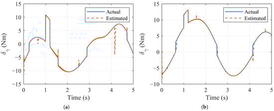 The estimation of lumped uncertainties of each joint. (a) The estimation of lumped uncertainties of joint 1. (b) The estimation of lumped uncertainties of joint 2.