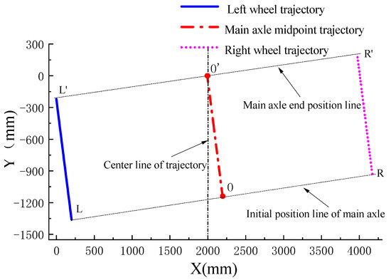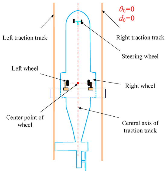 If d is positive, it means that the center point of the main wheel is located on the right side of the central axis of the traction track; if d is negative, it means that the center point is located on the left side.