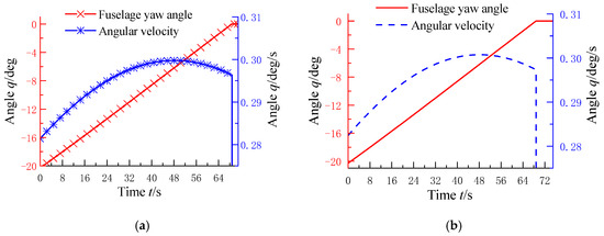 If the lateral offset of the helicopter is zero but the yaw angle of the fuselage is not, only the stepwise rotational correction is implemented, as shown in Figure 7b.