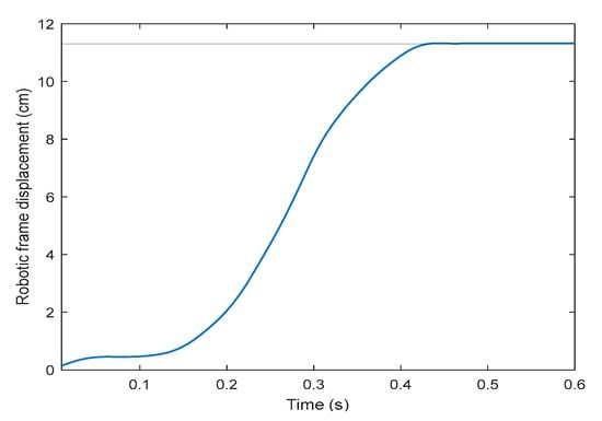 Robotic frame displacement profile restoring the exoskeleton–frame alignment, in centimeters, after the exoskeleton has been shifted its maximum forward distance (11.2 cm, solid horizontal line), using speed control.