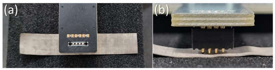 (a) Aligning IPMC sample parallel to the probes; (b) probe contact with IPMC sample.
