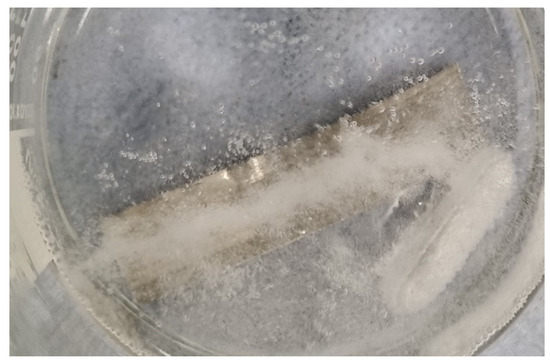 The process of the platinum reduction of IPMCs involves two stages of reduction: primary reduction and secondary reduction. The detailed instructions provided by Kim and Shahinpoor [5] utilise sodium borohydride (NaBH4) as the main reducing agent to initiate platinum adsorption onto a Nafion-117 film. The membrane previously soaked in Pt-Ammine is placed in an aqueous solution of 5% sodium borohydride at 60 °C. The translucent Nafion film turns blackish-silver, signalling platinum deposition. The chemical reaction of the primary reduction is as given in Equation (1) [6].