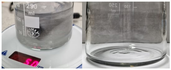 It was observed that some samples stirred at 20 °C stained beakers with platinum streaks, as shown in Figure 10. Physical agitation from stirring most likely caused the physisorped Pt cations on the Nafion strips to be displaced and adsorbed onto the beaker walls, further reduced to elemental Pt by NaBH4. Reduction kinetics at that temperature could be slow enough, allowing for the Pt cations to be displaced from physical agitation. Another possibility is the desorption of elemental platinum from the Nafion surface. However, if this were the case, the particles would be seen floating in the remaining solution instead of staining the inside walls of the beaker.