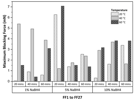 Maximum blocking force for samples FF1 to FF27.