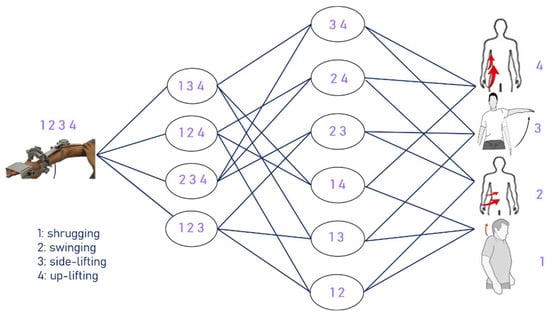| To | Shrug, Swing | Shrug, Side-Lift | Shrug, Up-Lift | Swing, Side-Lift | Swing, Up-Lift | Side-Lift, Up-Lift |