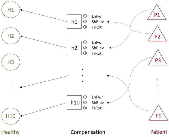 - To avoid prolonged experimental sessions for stroke patients, healthy participants completed the same scripted movements and then, under expert guidance, performed additional sets simulating everyday post-stroke compensatory movements, including lean-forward (LnFwr), trunk rotation (TrRot), and shoulder elevation (ShElev). Please see Table 1.
